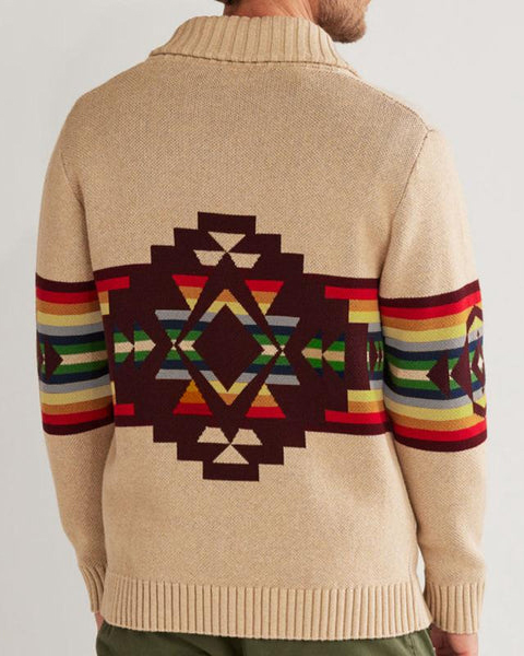 Men's Casual Striped Printed Long Sleeve Knitted Sweater Jacket