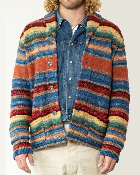 Men's Casual Striped Printed Long Sleeve Knitted Sweater Jacket