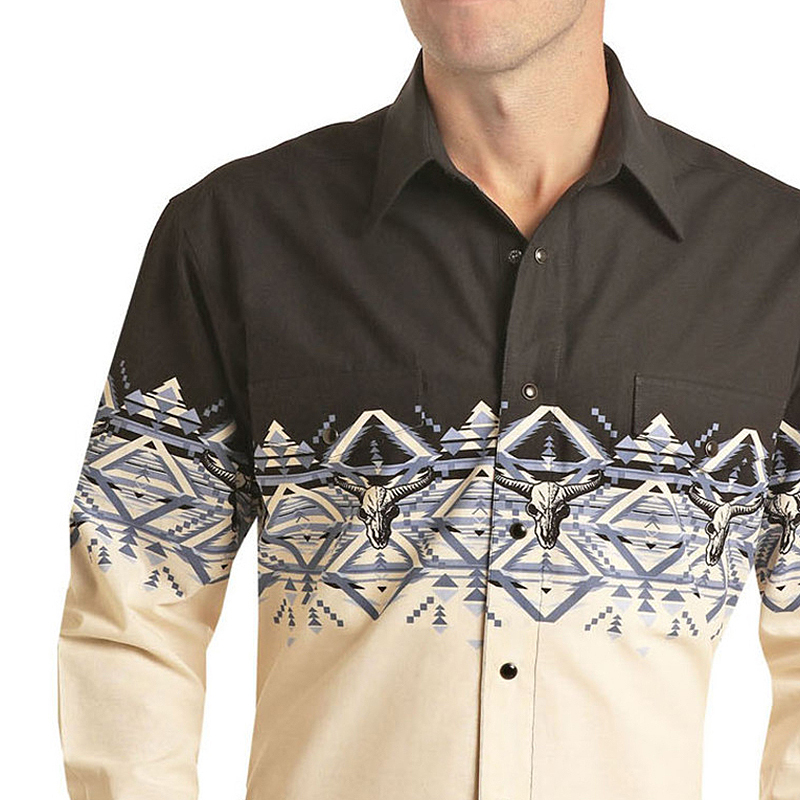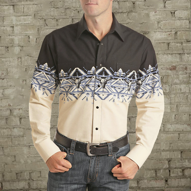 Men's fashion casual western style long sleeve shirt