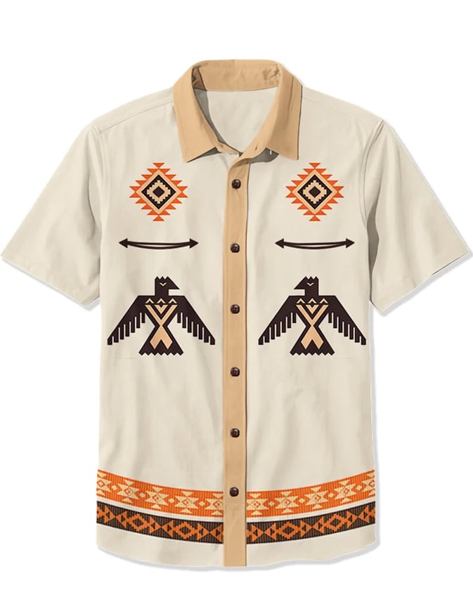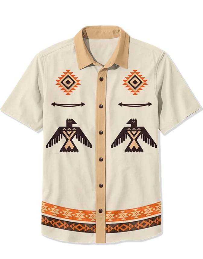 Men's Retro Western Aztec Thunderbird Print Casual Shirt