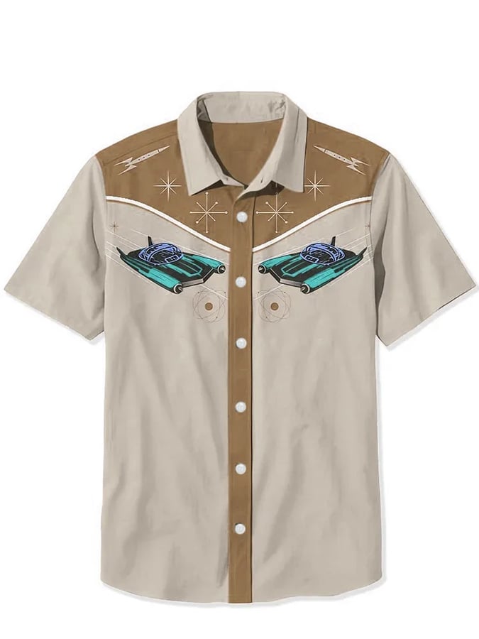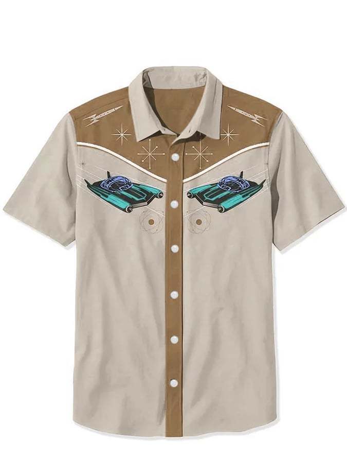 Men's Vinatge 1950s Atomic Car Print Casual Shirt