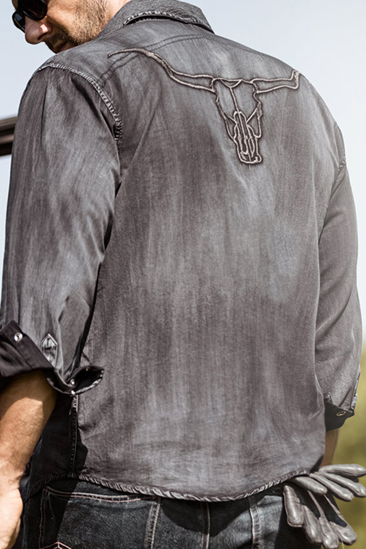 Men'S Vintage Back Embroidered Bull Head Print Shirt