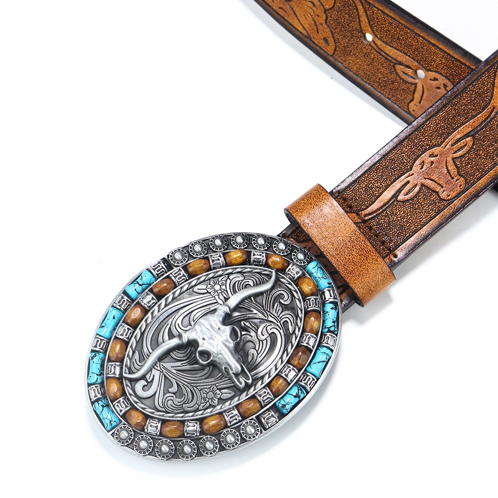 Men's Vintage Western Cowboy Bullhead Big Plate Buckle Belt