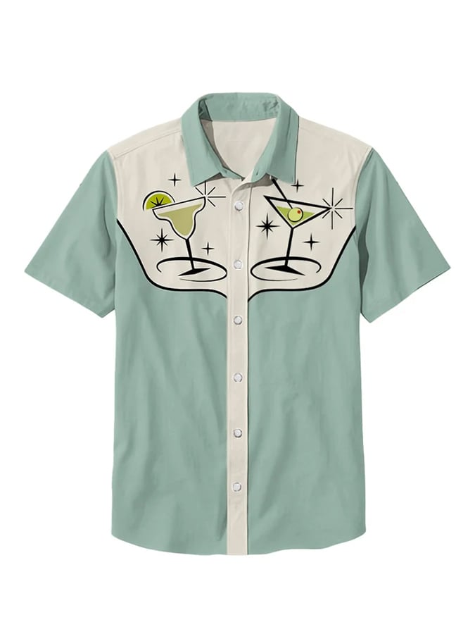 Men's Western 1950s Atomic Cocktail Print Casual Shirt