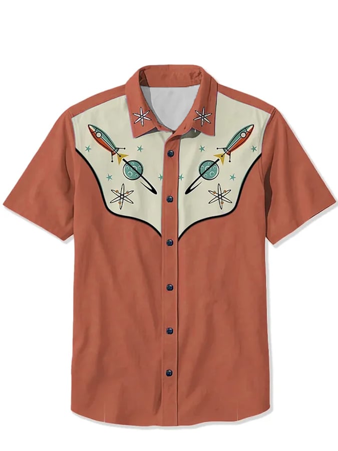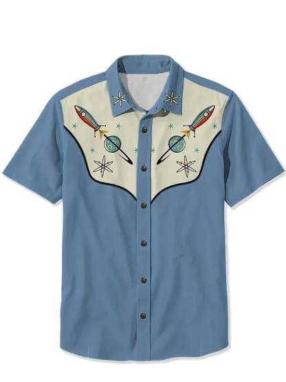 Men's Western 1950s Interstellar Atomic Print Casual Shirt