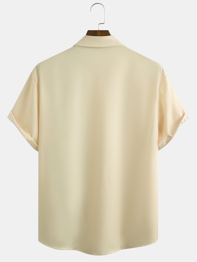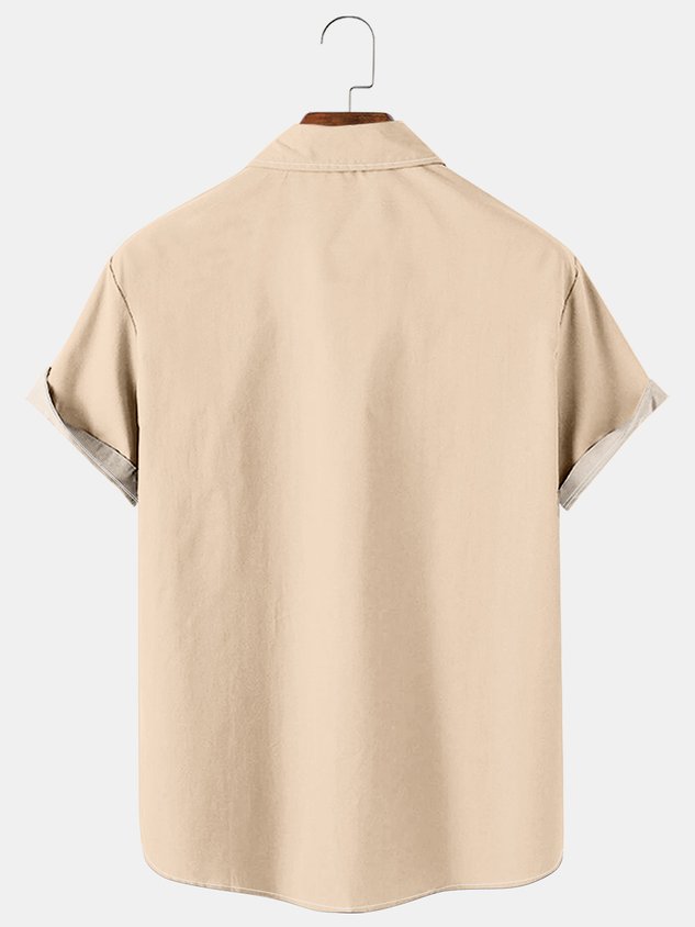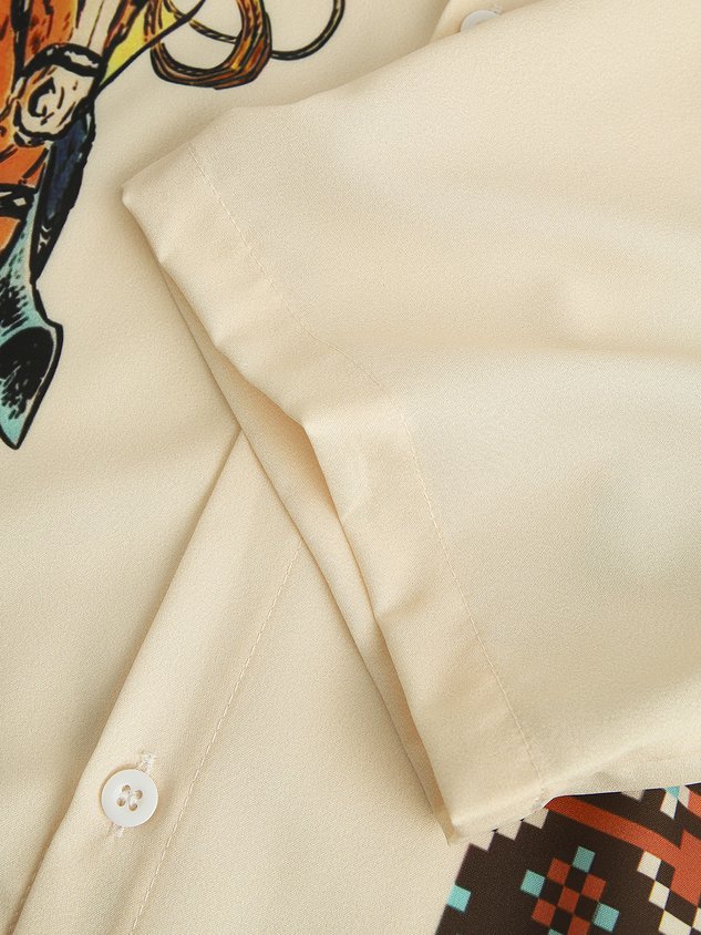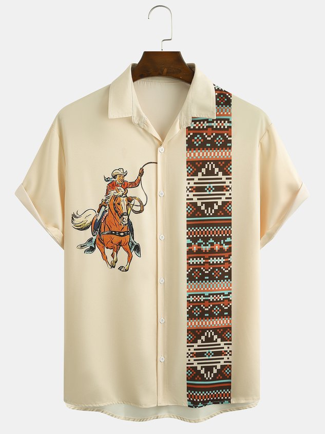 Mens Western Denim Print Short Sleeve Shirt Casual Vintage Top