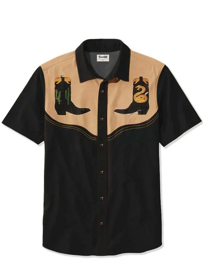 Men's Western Retro Classic Western Cowboy Boots Print Casual Shirt