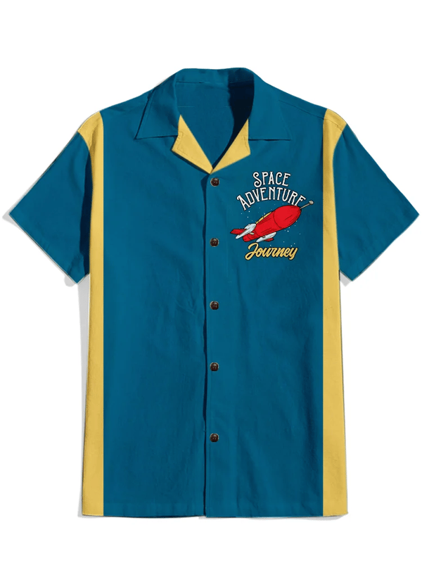 Mens Western Vintage 1950 Atomic Bomb Short Sleeve Cuban Shirt
