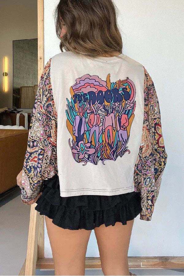 DetailsOne of a kind! Washed Vintage Graphic Tee with Batwing SleeveColor: BoneMaterial: 50% Cotton50% Recycled Mixed Fabric