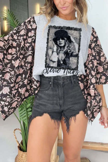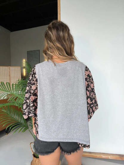DetailsOne of a kind!Washed Vintage Graphic Tee with Batwing SleeveColor: GreyMaterial: 50% Cotton50% Recycled Mixed Fabric