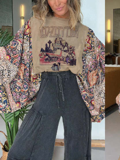 DetailsOne of a kind!Washed Vintage Graphic Tee with Batwing SleeveColor: PictureMaterial: 50% Cotton50% Recycled Mixed Fabric
