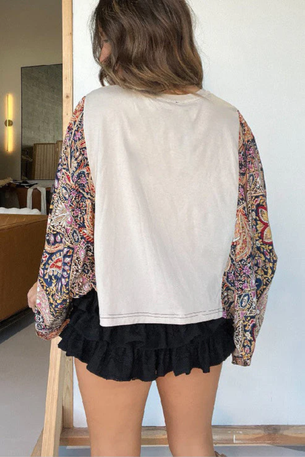 DetailsOne of a kind!Washed Vintage Graphic Tee with Batwing SleeveColor: BoneMaterial: 50% Cotton50% Recycled Mixed Fabric