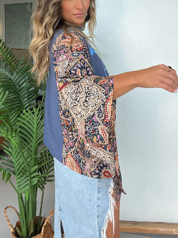 DetailsOne of a kind!Washed Vintage Graphic Tee with Batwing SleeveColor: PictureMaterial: 50% Cotton50% Recycled Mixed FabricSPU:TPCJ25031409Model MeasurementsHeight: 5'2"Bust: 34"Waist: 27"Hips: 36"