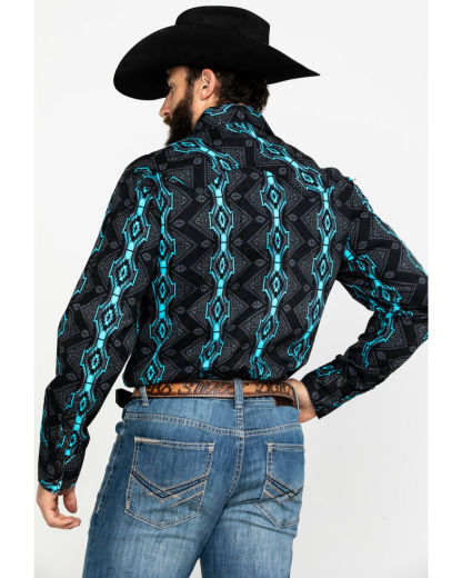 Rock & Roll Denim Men's Teal Vertical Aztec Print Long Sleeve Western Shirt