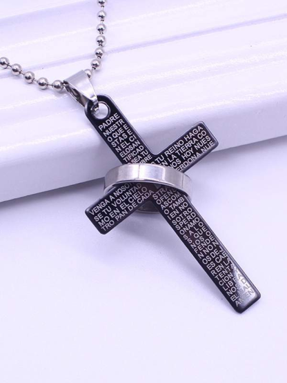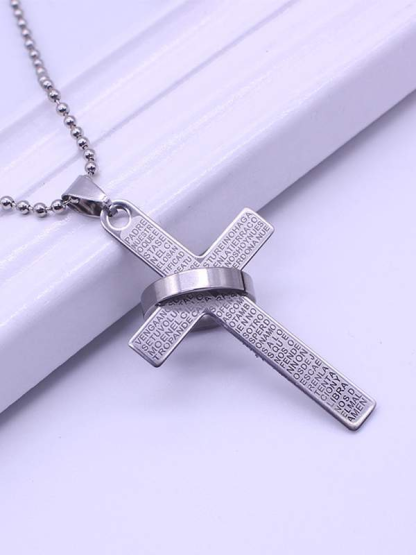 Scripture Ring Cross Titanium Steel Alloy Pendant Long Necklace