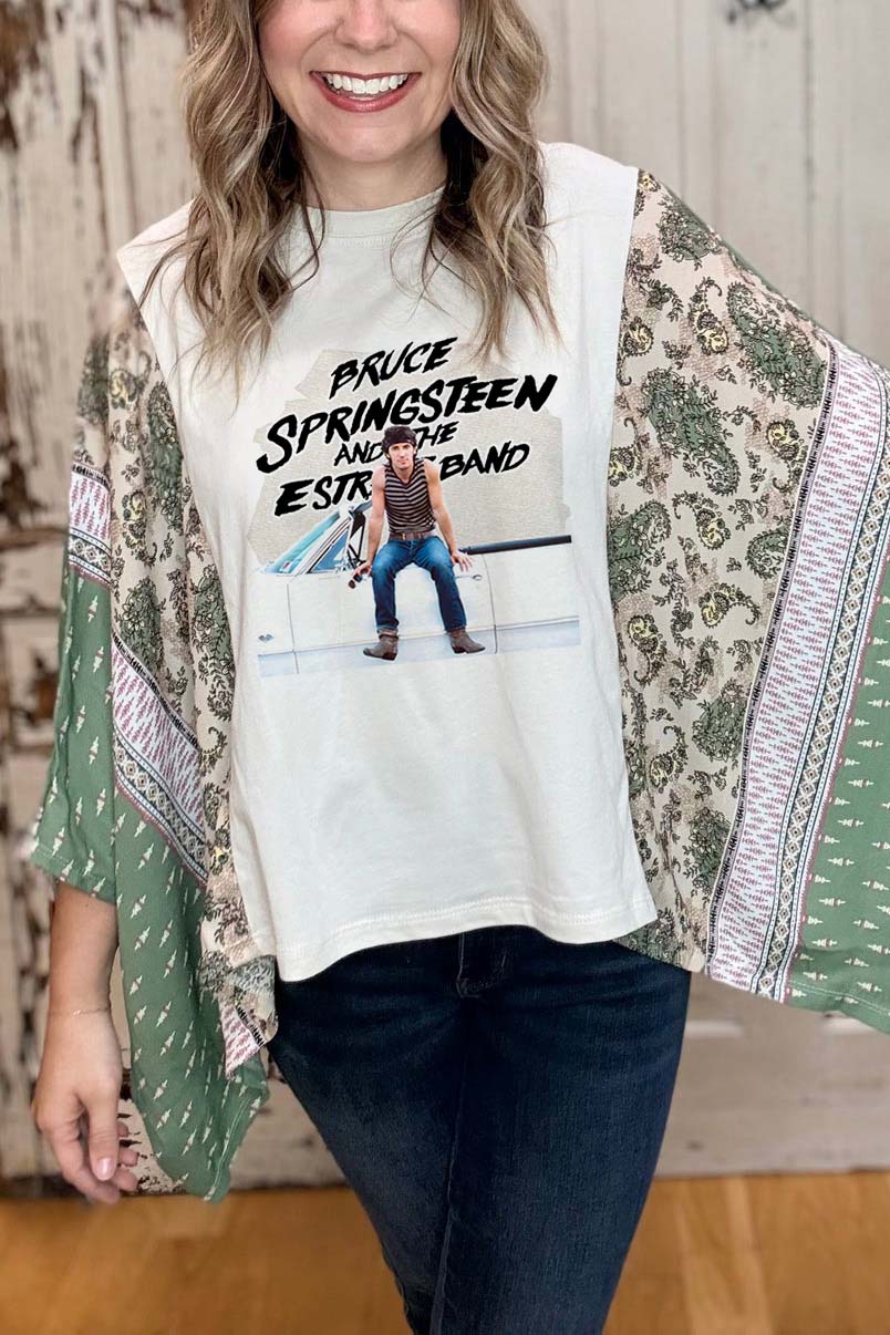Washed Vintage Graphic Tee with Batwing Sleeve
