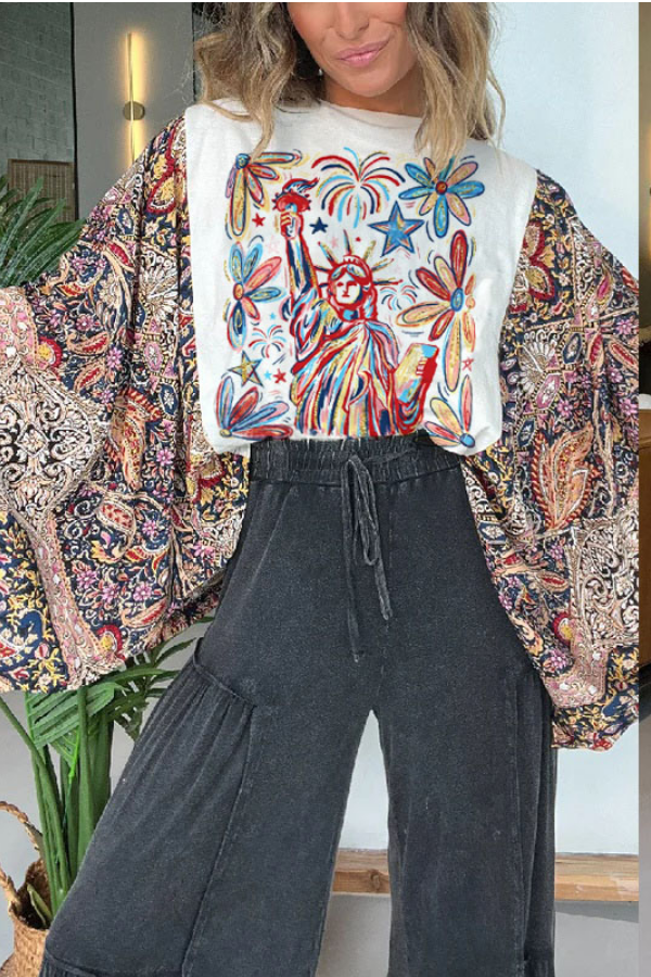 DetailsOne of a kind!Washed Vintage Graphic Tee with Batwing SleeveColor: PictureMaterial: 50% Cotton50% Recycled Mixed Fabric