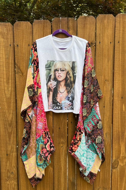 DetailsOne of a kind!Washed Vintage Graphic Tee with Batwing SleeveColor: PictureMaterial: 50% Cotton50% Recycled Mixed Fabric