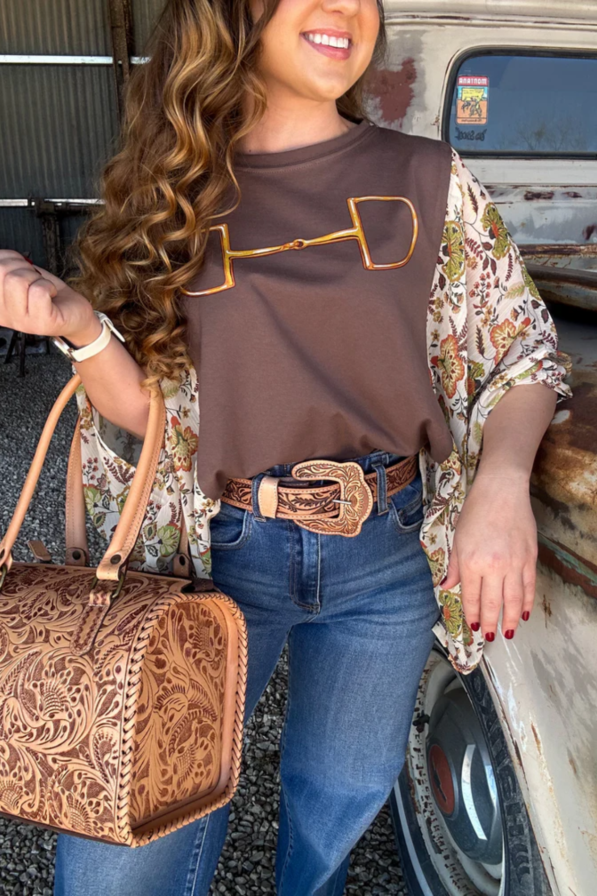 Washed Vintage Graphic Tee with Batwing Sleeve