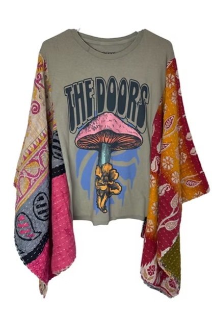 DetailsOne of a kind!Washed Vintage Graphic Tee with Batwing SleeveColor: PictureMaterial: 50% Cotton50% Recycled Mixed FabricSPU:TPZP25101407Size:One Size Fits MostModel is Wearing a Size OSModelHeight: 5'2"Bust: 34"Waist: 27"Hips: 36"