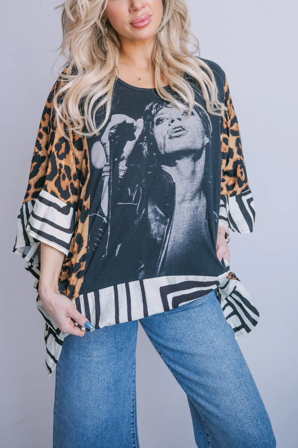 Details One of a kind! Washed Vintage Graphic Tee with Batwing Sleeve Color: Picture Material: 50% Cotton 50% Recycled Mixed Fabric SPU:TPSY26031115 Model Measurements Height: 5'2" Bust: 34" Waist: 27" Hips: 36"