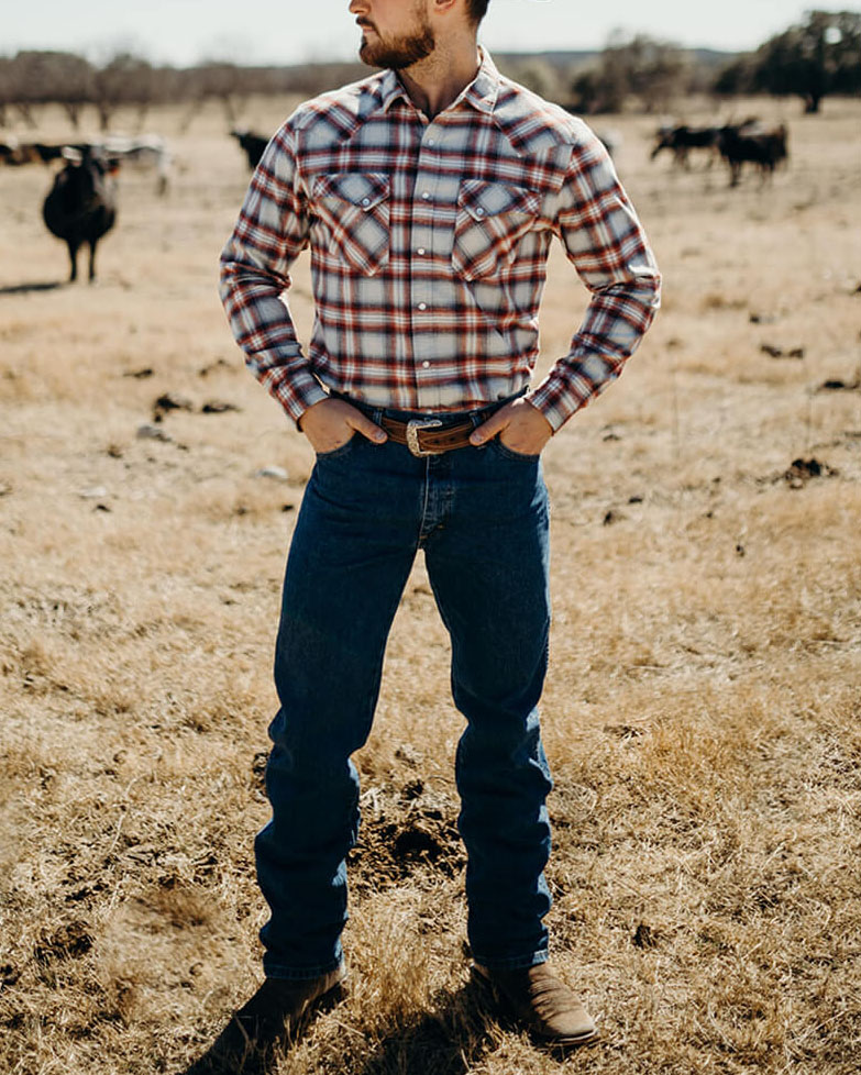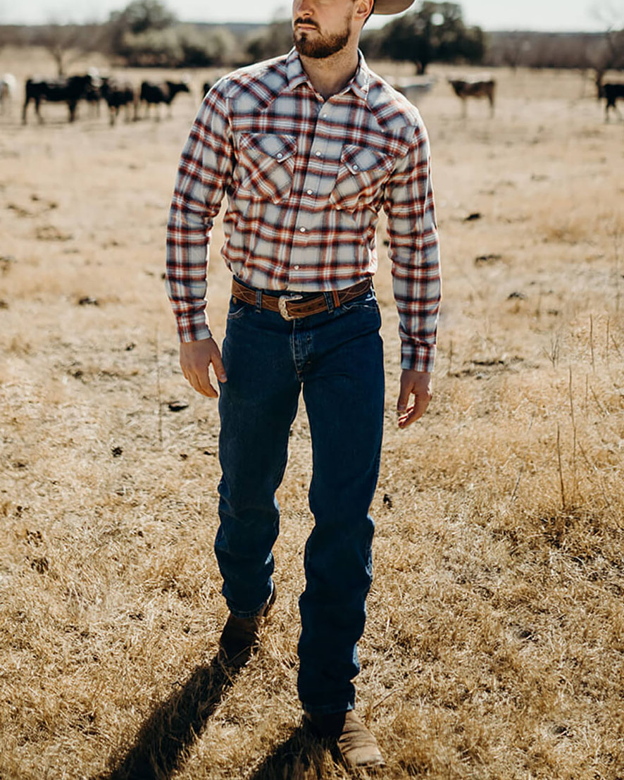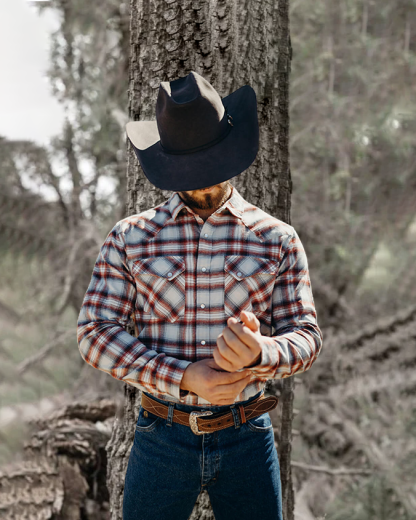 Men's Casual Vintage Western Plaid Print Long Sleeve Lapel Shirt